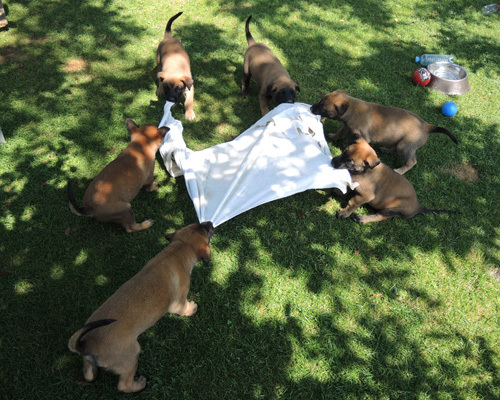 Es wird getobt, geübt und ordentlich gewachsen. Der S-Wurf wird von Woche zu Woche aktiver.